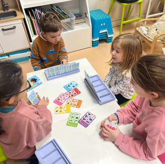 Jeudi 18 décembre, les MS et les CE1 se sont regroupés pour faire des jeux de société. Un très bon moment durant lequel les CE1 aident les MS et leur apprennent à respecter les règles des différents jeux.
